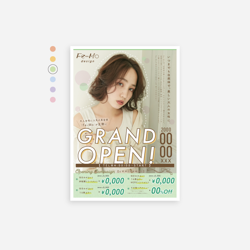 選べる5色展開!|新店舗のオープンやリニューアル時にご活用いただけるチラシです!