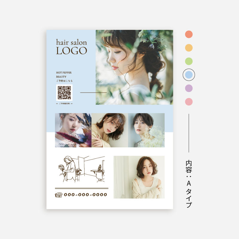 選べる5色展開!|分かりやすく見やすい、集客につながる美容室様向けのA1ポスター・看板をご提供!|シンプルで使いやすいデザインです。