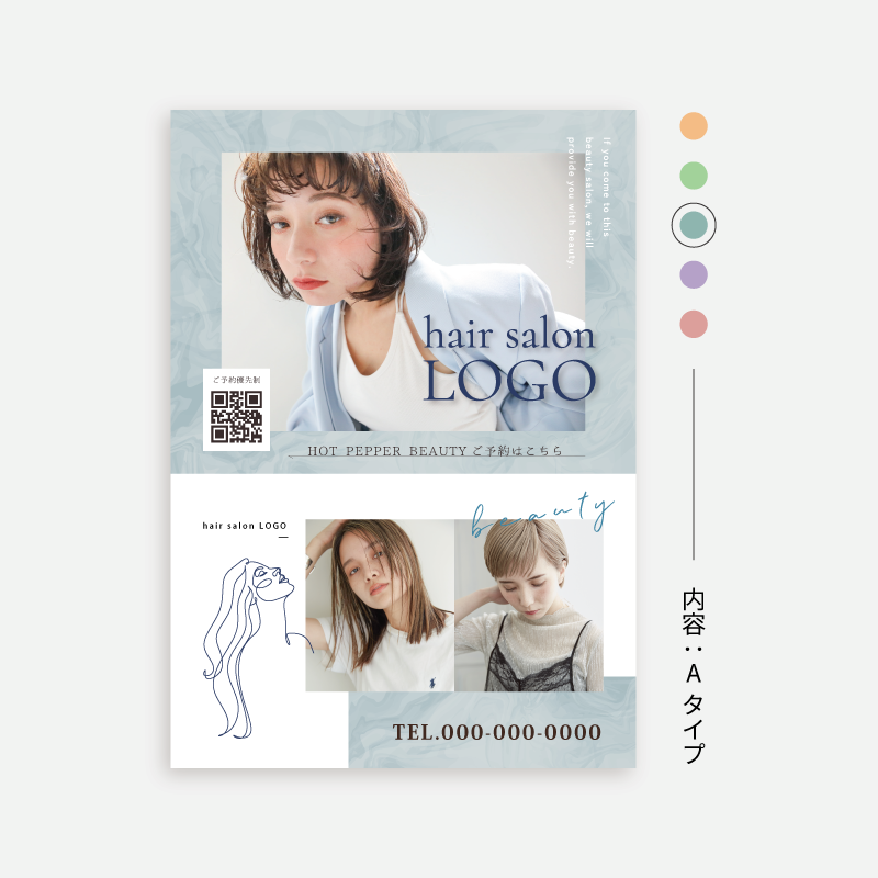 選べる5色展開!|分かりやすく見やすい、集客につながる美容室様向けのA1ポスター・看板をご提供!|写真が映えるマーブル柄が特徴のデザインです。